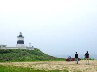 終於抵達富貴角, 而這裡就是 228 那天, 有個地表最強阿貝, 挑戰一日雙塔的出發地, 佩服佩服!! 光這裡, 就有個小坡, 真的很佩服他的體力與耐力, 看著台灣最北端的燈塔, 台灣是海島, 四面環海, 過去一直都是看著南部的海, 見到的也是南部的燈塔, 感覺真的很奇妙~