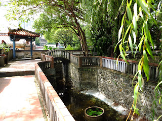 在這裡拍這小小山水時, 遇見一位怪伯伯, 先是問我拍照拍得如此仔細是學什麼的.... 又告訴我一堆, 他學什麼, 有什麼特異功能, 能感應什麼, 他接觸過什麼學者, 有多少碩士學位, 又有多少博士學位, 我聽了一頭霧水, 不知道他到底想表達什麼, 我也不好打斷他, 他說得口沫橫飛, 就是聽著, 也有點擔心, 會影響我要去定導的時間, 畢竟我才剛開始走這園林, 幸好他自己說 他還有事要先走, 不然我也很尷尬, 不過這位阿伯 到是有說到一個重點, 說這個園林很適合一來再來, 還有導覽也需要多聽, 建議我去買他們的簡介 ...
